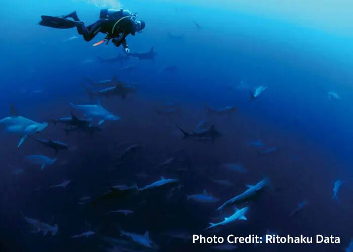 ระหว่างเดือนมกราคมถึงมีนาคม ฝูงฉลามหัวค้อนจำนวนมากจะมารวมตัวกันที่บริเวณเกาะโยนากูนิ นักดำน้ำจึงสามารถชมภาพอันตระการตาของฝูงฉลามที่ว่ายเรียงแถวกันใต้ทะเลได้อย่างใกล้ชิดได้ที่นี่